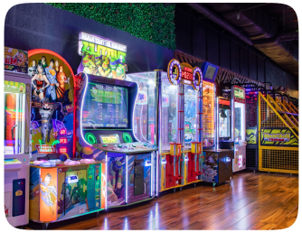 We’re bringing best-in-class VR and tech-enabled gaming experiences, along with classic arcade games, to a location near you! Enjoy kids’ soft play areas and cutting-edge cosmic bowling lanes for all ages. Our gaming centers foster a community around popular gaming and experiential content. Plus, indulge in fine food and drinks with unparalleled service for memorable experiences!